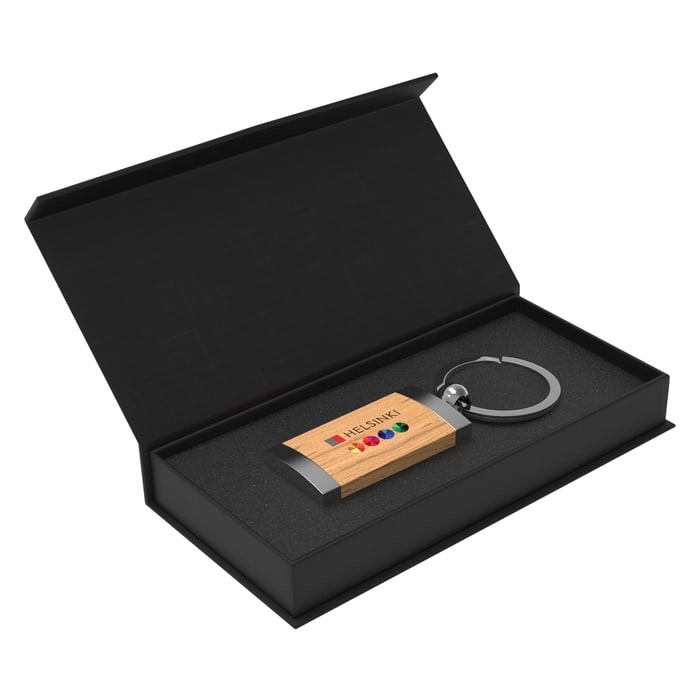 Heben Sie Ihre Werbegeschenke mit hochwertigen Verpackungen hervor. Geschenkbox mit Magnetverschluss, kompatibel für den Schlüsselanhänger Helsinki.